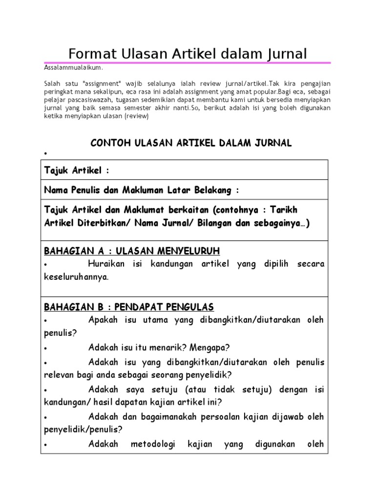 Contoh ulasan artikel jurnal / ulasan artikel / maybe you would like to learn more about one of these?. T subahan mohd meerah dari falkulti pendidikan ukm. Sharifah nor puteh dan prof dr. Pengenalan proses pengajaran dan pembelajaran merupakan sesuatu proses. Tajuk artikel dan maklumat berkaitan (contohnya :