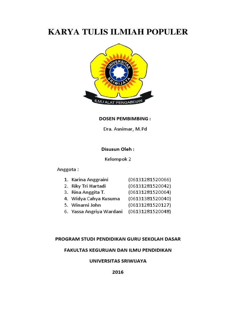 Karya ilmiah merupakan sebuah tulisan yang membahas suatu masalah dan pembahasan ini dilakukan berdasarkan penyelidikan, pengamatan, pengumpulan data yang didapat dari penelitian lapangan, tes laboratotium ataupun kajian pustaka. Contoh halaman judul ini disajikan pada lampiran 5.1. Tugas bahasa indonesia karya ilmiahpengaruh internet terhadap minat belajar siswa smp negeri 1 tempeh disusun oleh : 9,998 likes · 3 talking about this. Karya ilmiah unisba ini dibuat sesuai anjuran dikti no.