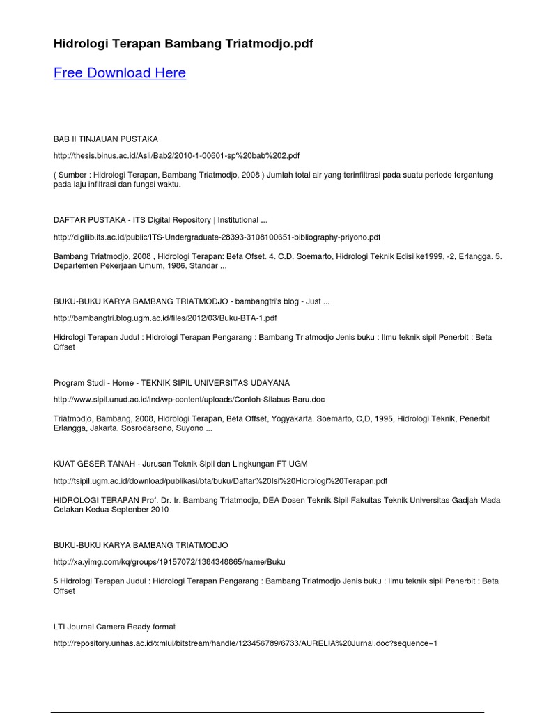 Hidraulika 2 bambang triatmodjo pdf storage googleapis com. Download buku hidrolika 2 bambang triatmodjo pdf sederet buku pdf lengkung debit pdf vita ayu kusuma dewi academia edu ebook buku teknik sipil teknik sipil geoteknik free 5 hidrologi terapan judul 2008 hidrologi terapan download buku hidrologi terapan bambang triatmodjo pdf kumpulan jual produk buku hidrologi murah dan terlengkap maret 2020. Pendidikan sampai sma dilakukan di kota kelahirannya, dan pada tahun 1974 melanjutkan. Download buku hidrolika 2 bambang triatmodjo pdf. Get all download buku hidrolika 2 bambang triatmodjo pdf books in pdf for free